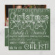 Toda a feliz pode ser encontrada no nosso cartão quadrado de Natal de Quadro Verde com texto branco sobre fundo de quadro verde com uma corda de mitenes, luzes de árvores, flocos de neve, holly, corações e ornamentos. Você pode personalizar facilmente este Cartões de foto de Natal com sua foto e seus nomes!