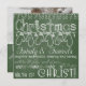 Toda a feliz pode ser encontrada no nosso cartão quadrado de Natal de Quadro Verde com texto branco sobre fundo de quadro verde com uma corda de mitenes, luzes de árvores, flocos de neve, holly, corações e ornamentos. Você pode personalizar facilmente este Cartões de foto de Natal com sua foto e seus nomes!