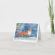 Lindo cartão de Natal de inverno em branco com uma raposa na neve com um céu noturno índigo profundo e uma lua dourada. A imagem original é pintada com aquarelas e tinta.