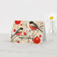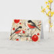 Cartão de Natal personalizável com dois papa-roubos sentados em galhos com enfeites vermelhos pendurados.