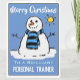 Um desenho animado de boneco de neve em um cartão festivo de Natal. Cartão de Natal para um treinador pessoal