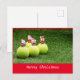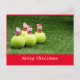 Cartão Postal de Natal de Tênis com bola de tênis e Papai Noel na grama verde