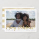 Envie cartões de natal para a família e amigos com esta placa plana de Natal personalizável, com o texto 'Feliz Natal' em bela tipografia dourada. Personalize adicionando sua foto e textos favoritos.