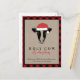 Cartão de Natal para Vaca Fazenda russa - com uma vaca com um Chapéu Santa num fundo Kraft rústico, rodeado de xadrez de búfalo vermelha e negra. O verso do cartão postal inclui uma área para o seu endereço de regresso, uma saudação de Natal e uma área para o endereço do destinatário. É incluído um código QR que leva ao seu endereço comercial, uma maneira muito conveniente de seus clientes encontrarem seu site. Todo texto pode ser editado.