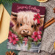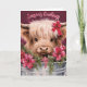 Mande desejos de férias calorosos com este charmoso cartão com uma linda vaca Highland adornada com arcos festivos e verde de férias. A mensagem "Saudações da Época" acrescenta um toque alegre, perfeito para compartilhar alegria festiva com amigos e familiares que amam designs de férias únicas e adoráveis.
