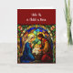 Uma bela cena da Natividade com a Bênção Virgem Maria e Rua José ajoelhado por Jesus enquanto dorme num gerente num estilo de vidro manchado. Um cartão de Natal que vocês, familiares e amigos, vão lembrar.