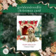 Um cartão de Natal de Cachorro Goldendoodle com uma cor d'água bonito de um Goldendoodle espirrado em luzes de Natal perto de uma lareira e árvore de Natal. Personalize com a sua família e o nome do seu cão.