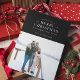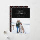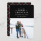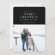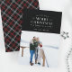 Cartões de foto de Natal de Xadrez de Feriado Preto. Tipografia branca, fotografia de solteiro, com a coordenação do padrão de xadrez de férias.