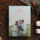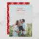 Cartões de foto de Natal de Xadrez de feriado vermelho. Sobreposição de fotos da tipografia vermelha com apoio do padrão de xadrez de feriado.