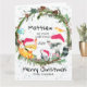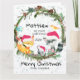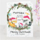 Um conjunto de animais da floresta com uma coroa de sempre-vivas prontos para celebrar o primeiro Natal do Bebê com ele. Envie um cartão de primeiro Natal para seu neto. Personalize todo o texto, desde os nomes até a mensagem interna.