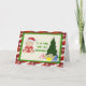 Envie este cartão bonito a alguém que está comemorando seu ø Natal. O fundo caracteriza bonés do papai noel em um fundo vermelho. No primeiro plano é vestir-se do rapaz pequeno papai noel o equipamento de Cap.his que é vermelho e está guardarando um bastão de doces listrado. Há uma árvore de Natal com os presentes do menino strewn sob ela. elementos do design de www.wpclipart. O design por watts do ©Bettie o interior está vazio.