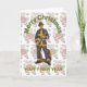 Este cartão de Natal é decorado com um brinquedo que o Fireman sobrepôs a um fundo de imagens em camadas de Papais noeis.