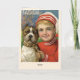 Vai para trás um século com este cartão bonito do natal vintage de um rapaz pequeno bonito em um chapéu do papai noel com seu animal de estimação amado, uma raça bonita do pitbull por seu lado. O ano no cobrir pode ser editado para refletir o ano correto.