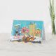Este cartão caracteriza uma cidade dos desenhos animados e uma família do castor desejando lhe o Feliz Natal. Colorido e divertimento para fãs do castor.