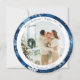 Celebre a temporada com este elegante cartão de Natal com uma festiva borda azul com flocos de neve ao redor da sua foto familiar. O moderno design de inverno torna-o perfeito para enviar desejos calorosos a amigos, familiares ou colegas de trabalho durante as férias. Com um formato redondo que se destaca dos cartões tradicionais, é uma forma na moda para compartilhar suas saudações de Natal e Ano Novo. Um belo guardião que os entes queridos vão tesourar. Se precisar de assistência com o design ou produtos correspondentes, envie-me um e-mail para zazzle@fivelittlelemons.com