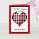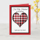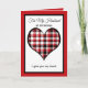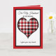 Este cartão de Natal do marido, que se sentia sincero, apresenta um coração vermelho, branco e xadrez preto como ponto focal, borrado a preto e vermelho. O cartão diz, "Para o meu marido no Natal." Abaixo do coração estão as palavras, "Eu te dou meu coração..." Dentro é um verso de Natal muito sentimental sobre dar seu coração ao seu marido. Copyright Kathy Henis