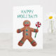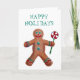 Cartão de Natal alegre com um homem de gengibre colorido e a mensagem "Felizes Festas" acima. Em branco no interior.