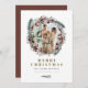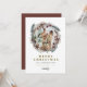 Este cartão de Natal apresenta pinheiros impermeáveis com flores de burgundy mutadas e um slot de fotos redondas divertido dentro da coroa. Edite facilmente todos os textos para atender às suas necessidades. Este cartão de férias é perfeito para a família festiva de Natal.