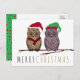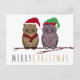 Este cartão de Natal com o Owl Papai Noel e Elf Owl empoleirados em um galho coberto de neve é perfeito para enviar a amigos e familiares durante a temporada de festas.