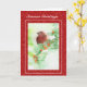 Cartão de Natal com um Tentilhão Vermelho num Galho de Frutas com Brilho Vermelho.