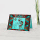Personalize este cartão de Natal "Único" do Sudoeste Kokopelli! Ele apresenta um Kokopelli do sudoeste tocando flauta e dançando sob o sol em um fundo turquesa, cercado por bordas turquesa, laranja e preta e as palavras edificantes... "Paz na Terra"!