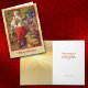 Papai Noel examina uma locomotiva de brinquedo enquanto enche sua bolsa na frente deste cartão de Natal de imagem artística de vintage. O texto no final diz "Feliz Natal". A imagem é colocada sobre um fundo de gradiente dourado leve, perfundido, e é bordada em vermelho com uma fina linha dourada. O dentro da placa tem o fundo dourado à esquerda e o outro lado é branco, com campos de texto personalizados para sua mensagem e assinatura. Celebre o Natal à moda antiga com esta bela carta mostrando uma imagem de dias passados.
