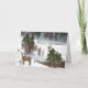 Dois cervos de Whitetail que estão na frente do vale coberto de neve com pinheiros de inclinação. A fotografia incandesce com uma edição digital. Cartão de Natal.