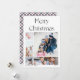 Cartão de Natal simples e elegante com 5 fotos, personalizado com seus nomes e texto. Um padrão festivo de xadrez desenhado pela mão atrás. Perfeito para famílias que querem combinar uma colagem multifoto com estilo de Natal elegante e eterno. Este cartão de feriado combina personalização e humor festivo.
