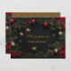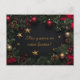 Celebre a época festiva com este elegante cartão de Natal, apresentando uma grinalda lindamente detalhada adornada com fitas vermelhas, estrelas douradas e pinheiro verde exuberante. O fundo escuro luxuoso realça os elementos festivos, criando uma saudação de férias sofisticada e calorosa. A frente do cartão inclui uma mensagem sincera, "Frohe Festtage und ein gutes neues Jahr!" (Boas Festas e um Feliz Ano Novo!), enquanto o verso oferece campos de texto e endereço totalmente personalizáveis, permitindo que você personalize seus votos de Natal para os entes queridos. Perfeito para enviar um toque de elegância neste Natal.