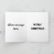 Este engraçado cartão de Natal mostra Papais noeis voando sobre algumas casas onde uma casa tem um grande sinal no telhado lendo "malvado" uma criança descontente é vista deitada na cama com a lâmpada ligada.