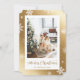 Foto elegante em floco de neve de ouro Cartão de Natal Merry com flocos de neve sobre fundo de ouro metálico. Personalize facilmente este cartão de feriado dourado com sua foto e texto.