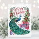 Cartão de Natal de pavão de aquarela branca. Personalize com seu próprio texto de saudação.