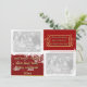Modelo de cartão com fotos de para fotos de 3 fotos, vermelho e ouro, festivos - Cartão de saudação de fotos personalizado com linhas brancas de escrivação quadros modelos de fotos de feriado para 3 fotos favoritas da família. Adicione uma foto da família à esquerda com flocos de neve brancos sob a foto da família e texto personalizado que lê de nossa casa para o seu modelo de texto de feriado para o nome da família, membros da família e o ano de feriado. Qualquer texto pode, naturalmente, ser alterado. Feliz Natal e Melhores Desejos para um Feliz ano novo são impressos à direita com um quadro de rolagem dourada em letras douradas com uma sombra preta para fazer a saudação da estação se destacar. Contra um fundo vermelho escuro. Abaixo está o espaço para outra foto de feriado personalizada. Coordenar o fundo da sombra das árvores verdes e vermelhas nas costas também tem outro grande modelo de foto de Natal para uma foto favorita de Natal. O design de inverno é excelente para muitas ocasiões especiais de inverno, não apenas para cartões de saudação de Natal - Natal, festa de Natal, inverno e muito mais. Temos também este design de férias moderno e brilhante em outros suprimentos e presentes de escritório. Visite nosso compro online do Zazzle para muitas outras designs de inverno, feriados e Natal. Carregue as suas próprias fotos da família e introduza as suas próprias informações pessoais para Cartões de foto de Natal personalizados. Altere a cor do texto, o estilo da fonte ou o texto, se desejar.