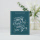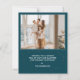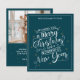 Elegante Teal & White Feliz Natal e Cartão com fotos de Férias de Feliz ano novo. Mande desejos de férias calorosos com este elegante Teal e Cartões de foto de Natal branco. A frente apresenta uma tipografia festiva, escrita à mão, com sotaques de estrelas douradas e uma fina borda branca. O verso inclui espaço para a foto da sua família, saudação personalizada e nome. Perfeito para o estilo de feriado moderno, mas eterno. Uma bela maneira de desejar aos entes queridos um Feliz Natal e um maravilhoso Ano Novo! Para mais personalizações, contacte-me em mypaperlove2021@gmail.com