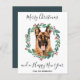 Envie cartões de natal nesta temporada de festas com este elegante German shepherd de Feliz Natal em um cartão de design de coroa, e compaixão. Este cartão de german shepherd apresenta um cão aquarela numa coroa verde e vermelha com sagrado e bagas. Personalizar com o nome da família. Este cartão de natal de german shepherd será um favorito entre amantes de german shepherd, amantes de cachorros e amantes de os animais. Visite nossa coleção para combinar cartões de natal de german shepherd, decoração doméstica e presentes. COPYRIGHT © 2020 Judy Burrows, Black Dog Art - Todos Os Direitos Reservados. Cartão de Natal Feliz para Cachorro German shepherd