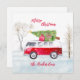 Cartão de Natal Feliz do Caminhão Vermelho. Personalize adicionando seu nome de família, mudando a frase Feliz Natal e escrevendo seu dentro de mensagem especial. Itens correspondentes disponíveis.