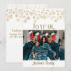 O cartão de Natal alegre com floco de neve, com cor dourada, é a forma perfeita de enviar cartões de natal para amigos e familiares. Para a pessoa que quer um cartão de Natal festivo, mas quente e agradável, este modelo de cartão de Natal personalizável é adequado para você. A letra de escrevendo de mão velha e limpa com a palavra "alegre" tem a esperançosa estética de feriado que todos amam. Use a ferramenta de personalização para colocar sua imagem no local designado e personalizá-la com seu nome. As costas também têm flocos de neve dourados com uma adorável mensagem de feriado. Guarde o que lhe é fornecido ou personalize-o de acordo com o seu gosto.