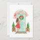Cartão de Férias de Natal com a ilustração de moda com aquarela de morena e coroa de Natal na porta.