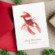 Ilustração natalícia festiva de uma lagosta vestindo um chapéu de Santa vermelho.