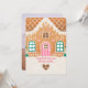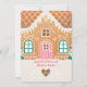Este cartão de Natal da Casa Gingercake contém uma casa festiva de pão Gingerpão, decorada com rosa, verde e branco. A saudação diz: "Beijos de pão-de-gengibre e desejos de Natal." As costas têm um lugar para a sua foto favorita. Coordena-se com a coleção do Partido Gingerpão.