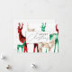 Um cartão de Natal único e na moda, projetado com renas de cristal de cor d'água pintadas à mão em três cores de pedra preciosa: esmeralda, rubi e diamante. A parte traseira contém uma mensagem de feriado quente que você pode deixar como está, editar como quiser ou excluir para um cartão de vazio.