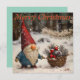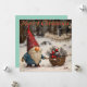 Um cartão de Natal gnomo para celebrar a temporada. Esta é uma imagem plana, de dois lados. A frente é um gnomo na primeira ilustração. A frente diz: Feliz Natal. O verso diz: Tenha uma estação maravilhosa!