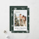 Cartão de Natal verde com flocos de neve com flocos de neve em fundo verde-nevado. Personalize facilmente este cartão fotográfico de Natal com a sua fotografia e o seu nome familiar.