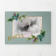 Um bonito quadro de ouro duplo de morango preto segura sua própria fotografia no cobrir deste triplo cartão de Natal. O fundo é um verde sábio atrativo, e o texto "JOYFUL" está em uma escrita de pincel. O dentro tem mais dois modelos de fotos, e o meio mantém seu texto personalizado em branco. A parte de trás tem mais um modelo de foto, fazer total de quatro, e um bonito padrão de holly e berry. Uma bela maneira de cumprimentar amigos e família sobre a temporada de Férias!