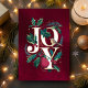 Celebre a época de férias com este cartão de Natal "Joy", maravilhosamente desenhado. Apresentando uma ilustração clássica e elegante de folhas sagradas, bagas, um pássaro, e uma pera sobre um rico fundo de burlôncio, esta carta captura a essência do espírito de Natal. O detalhamento intrincado e o design eterno tornam perfeito para espalhar alegria aos seus entes queridos nesta época festiva.