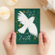 Uma mão ilustrada flutua através deste charmoso cartão de Natal espalhando uma mensagem de alegria e paz na Terra.