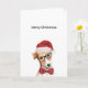 Cartão de Natal de Jack Russell. Jack Russell vestindo uma gravata arco, vidro e chapéu de Santa.