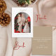 O cartão de Natal alegre e elegante de fotos de arco é a forma perfeita de enviar cartões de natal para amigos e familiares. Para a pessoa moderna que quer um cartão de Natal elevado, quente e saboroso, este modelo de cartão de Natal personalizável é adequado para você. A letra clássica com a palavra "alegre" tem a esperançosa estética de feriado que todo mundo ama. Use a ferramenta de personalização para colocar sua imagem no arco e personalizá-la com seu nome. O inverso é um tom de ouro suave com uma bela saudação de Natal e mais opções para personalização para um visual sofisticado de férias.