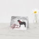 A silhueta do Labrador Retriever com o texto "Feliz Natal!" num fundo de inverno.