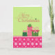 Este cartão dobrado Natal tem um esquema de cores cor-de-rosa e verde. Há três presentes na parte inferior com uma beira dos flocos de neve do rosa quente na capa. Você pode facilmente personalizar o cumprimento e seu nome de família no interior. Trabalhos de arte por Kelly Medina